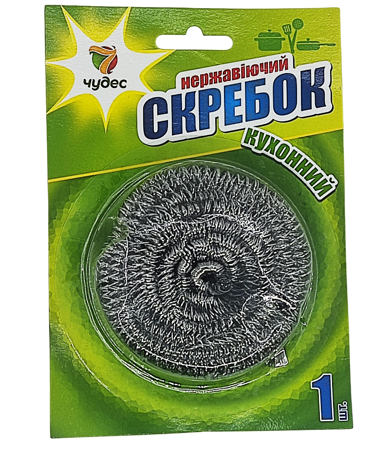 Скребок нержавіючий спіральний призначений для чищення сильних забруднень. Застосовувати до поверхонь, які не бояться агресивної механічної дії. Після використання скребок рекомендується промити, віджати та залишити у сухому місці.