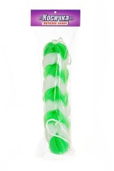 Одна з найпопулярніших і найзручніших мочалок для тіла. Зроблена у вигляді плетіння коси та обладнана двома ручками-мотузками. Особливо актуальна для миття спини. Довжина мочалки-кіски 28 см. Розтягується більш ніж на метр.